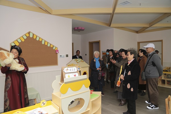 会员们首先参观了中都城遗址公园,拜谒了对中都城的发现、发掘和考证作出历史贡献的王剑英先生的雕像,参观了新建的中都城游人观荷桥;然后分别参观了凤阳实验小学崇文校区和新建的云霁街幼儿园,并听取了校、园领导关于校园建设及教学成果介绍。实验小学的花鼓艺术、足球运动、钱学森班、国际英语的办学特色令会员们赞不绝口,学校完备的教学设施和条件,一流的教学师资队伍,给会员们留下了美好、深刻的印象。云霁幼儿园高标准建设的教室、图书室、午休、活动室让大家激动不已。会员们在云霁幼儿园教室里兴奋地抱起布娃娃留影,重温小时候上学的情景,今昔对比,感慨万千。