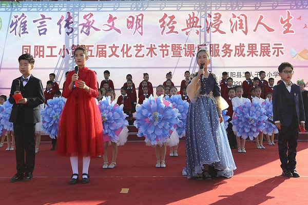 11月12日下午,凤阳工人子弟小学“雅言传承文明 经典浸润人生 ”经典诵读暨第五届文化艺术节课后服务展示活动在该校操场隆重举行。