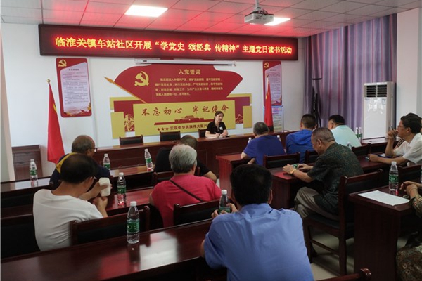 7月15日上午,凤阳县临淮关镇车站社区结合主题党日,以“学党史 颂经典 传精神”为主题,组织社区党员、辖区居民开展党史教育读书分享会。