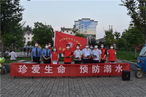 7月31日,凤阳县大庙镇党委党支部联合县检察院和县税务局青年党员来到位于该镇御苑新村的新时代文明实践广场,开展防溺水和疫情防控及疫苗接种集中宣传活动。