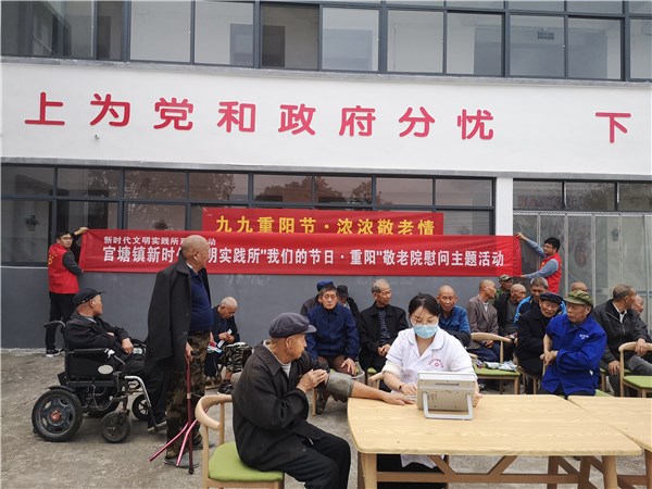 10月13日下午,凤阳县官塘镇新时代文明实践所联合县民政局、嘉禾社工在官塘镇鸿福老年公寓开展“我们的节日·重阳”敬老院慰问主题活动。