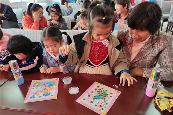 为培养小朋友们的动手能力,促进亲子关系,组织开展了“小手拉大手”的亲子互动手工活动。计生协工作人员耐心的教大家如何用小纽扣制作纽扣画,一会儿一幅幅纽扣画就完成了,有小蝴蝶、孔雀、汽车等等,漂亮极了。随后还给每位女孩子发串珠,由家长陪同一起串珠子,小朋友和家长一起合作参与,体会到了创作的欢乐。