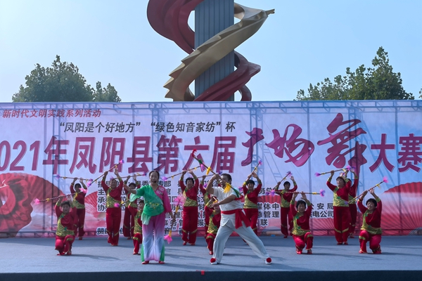 比赛现场,参赛选手们伴随着欢快的节拍,变换着队形,热情洋溢的表演和甜美的笑容展现了对美好生活的向往和赞美。板桥镇余湾舞蹈队的《舞动中国》节奏欢快动感,尽显个性与活力,赢得了观众的阵阵掌声;临淮关镇钱杆子艺术团的《大美凤阳》独具地方特色,节目形式接近群众生活,歌唱了凤阳人民的美好生活;府城镇鼓乡艺术团的《凤舞鼓乡》随着音乐,裙摆起舞,仪态优雅,舞步轻盈,充分展示了凤阳花鼓的独特魅力。