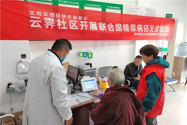 近日,凤阳县府城镇云霁社区新时代文明实践站联合社区卫生院,组织卫生健康志愿服务队,开展第15个“联合国糖尿病日”义诊志愿服务活动。活动旨在围绕预防糖尿病这一主题,呼吁广大群众,重视糖尿病及并发症的筛查,一起享受建康生活。