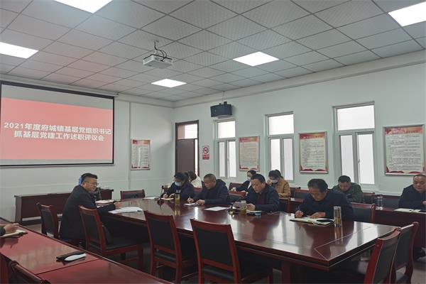 为全面做好2022年度基层党建考核工作,全面夯实基层党组织堡垒作用,结合当前疫情防控工作要求,3月31日下午,府城镇党委在三楼会议室召开2021年度基层党组织书记述职评议视频会议,会议由镇党委副书记、镇长王勇同志主持,全体党政班子成员在主会场参加会议,包村(居)干部、村(居)“两委”干部在所包保村居参加视频会议。
