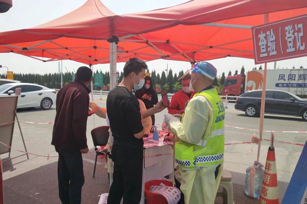 疫情防控是一场持久战,高速出口是外防输入的第一道防线。为此,我县在春节以前就在境内五个高速出口全部设立了疫情防控卡点。宁洛高速小岗村出口位于凤宁现代产业园内,车流量较大,执勤人员身穿防护服,坚持逢车必检、逢人必查、登记备案,全程留痕的原则,全天候不间断对来、返凤人员和车辆进行逐一登记,为司乘人员扫码测量体温,严格落实各项排查工作,引导大家有序开展落地核酸、抗原检测。卡点负责人介绍:“宁洛高速小岗村出口是目前我县车流量最大的出口,我们如果发现有司乘人员行程码带*的立即贴上封条,由目的地企业出具《疫情防控承诺书》,往返全程闭环管理,加强防控。健康码非绿码一律劝返,无48小时核酸检测阴性证明一律劝返。”自1月15日至4月17日,该卡点共检查车辆70668辆88860人,劝返车辆732辆1011人,在筑牢疫情防控“第一关”的同时,也极大的保证了园区企业销售运输的安全与畅通。