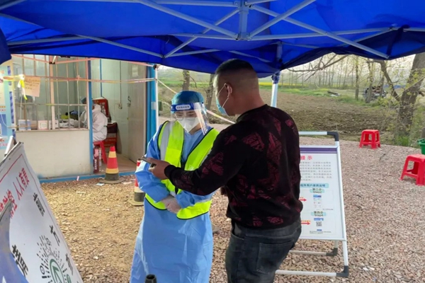 下午4点,一位骑电瓶车的大哥自觉停下来扫安康码,当我要帮他申领核酸检测二维码时,他说:“这个码我手机里有,我经常经过这个路口去前面村里送鸡蛋,对你们的流程已经很熟悉了,每次这些码和核酸检测报告我都提前准备好,也给你们省点心了!”虽然来往人员不断,但总会有配合工作的群众,使防疫检查工作更加高效。