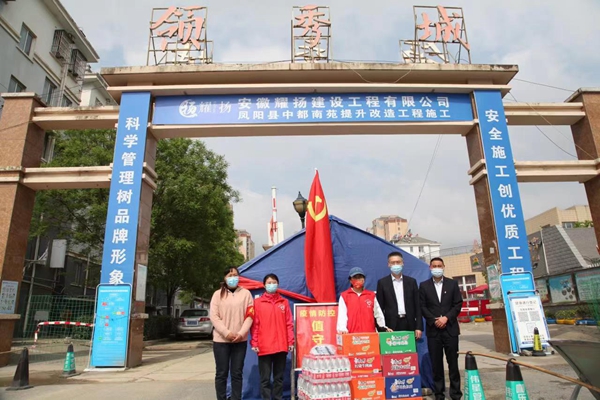 4月29日,凤阳农商银行党委委员、副行长刘平和工会人员一起走访慰问疫情防控值守人员,代表行党委、工会向社区一线防疫人员送去节日祝福和慰问物资。