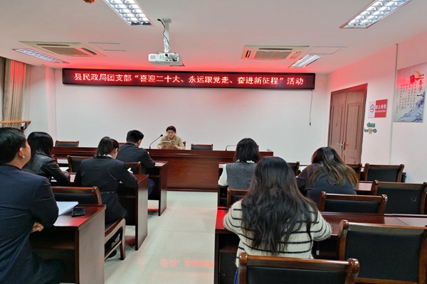 为庆祝中国共产主义青年团成立100周年,引导广大青年团员学习掌握中国共产党领导下的团史、青运史,厚植对党情感,团结引领广大青年永远跟党走,奋进新征程,以实际行动迎接党的二十大胜利召开,4月29日,县民政局团支部组织局机关青年团员开展“喜迎二十大、永远跟党走、奋进新征程”主题活动,带领青年走进百年团史,追寻信仰之光,勇担青春使命。