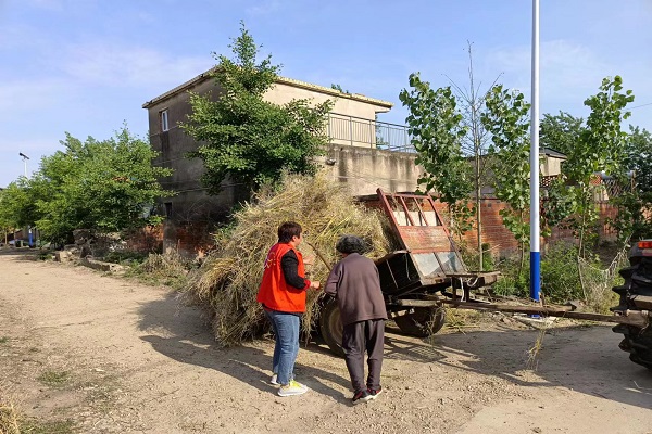 在人居环境整治工作中,志愿者穿上红色马甲,在划定的责任片区,走村入户,有序开展帮扶整治工作。“大娘,这个不能堆在路边,我帮您一起装车,给拖回家院里去吧”。志愿者耐心地劝导村民,引导村民不乱堆、乱放,配合整理门前屋后和路边的杂物,共同维护村庄环境。