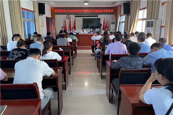 考核组首先在镇三楼会议室召开西泉镇2021年度乡镇领导班子和领导干部考核大会,考核组相关成员出席会议,会议由镇党委书记主持,全体镇干部、各村党(总)支部书记参加会议。
