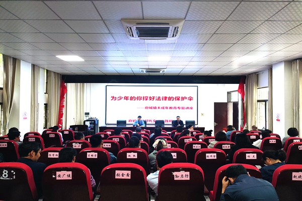 为进一步关心、关爱未成年人身心健康,依法维护未成年人合法权益,5月26日上午,府城镇新时代文明实践所在电教室一楼报告厅举办“为少年的你撑好法律的保护伞”为主题的未成年人保护专题宣讲活动。全体镇直机关干部、各村、社区书记共100余人参加了培训。