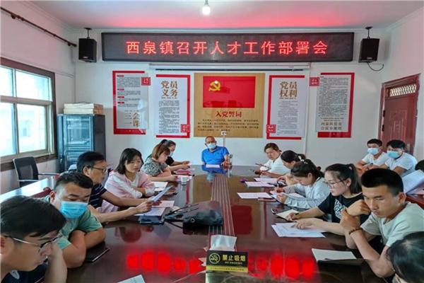 6月6日上午西泉镇组织召开专题会议对西泉镇人才工作进行安排部署。参加此次会议的人员有党政领导班子成员、各部门负责人、各村书记。