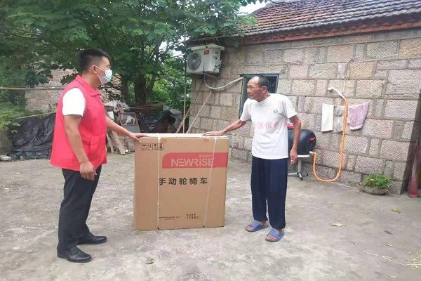 年老体弱,不会骑车,去集市路远,外出十分不便,王成虎在走访时得知了这一情况,及时反映给了镇残联、为其申请了轮椅。2022年3月份,王成虎为他们送去了轮椅并亲自安装,为崔怀英夫妻详细说明了操作流程,使用注意事项,搀扶其坐上了电动轮椅。