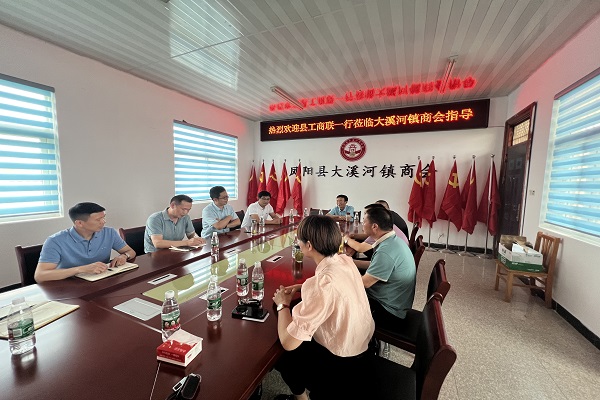 6月21日下午,县工商联党组书记陈光锐一行到大溪河镇调研商会建设和当地企业发展情况,并召开座谈会。