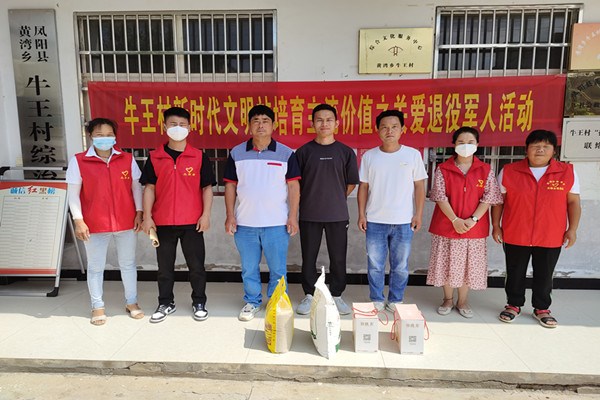 为弘扬拥军优属光荣传统,体现党和政府对退伍军人的关爱,7月25日,黄湾乡牛王村新时代文明实践站组织志愿者开展培育主流价值观之关爱退役军人活动。