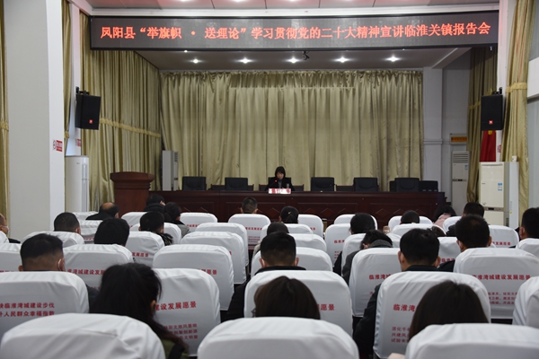 12月9日上午,临淮关镇在镇新时代文明实践大讲堂举行凤阳县“举旗帜·送理论”学习贯彻党的二十大精神宣讲临淮关镇报告会。县委常委、宣传部长赵文霞作宣讲报告,镇党委书记主持会议,镇党委、政府、人大班子成员、包村干部、镇直部门负责人、各村(社区)“两委”干部参加。