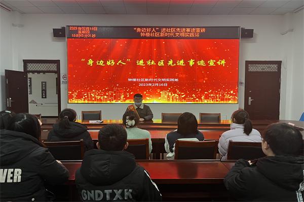 2月16日下午,钟楼社区邀请“身边好人”怀磊进社区宣讲先进事迹。